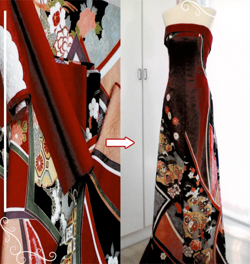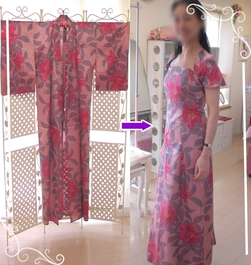 反物から着物ドレスへとリメイクしました。
