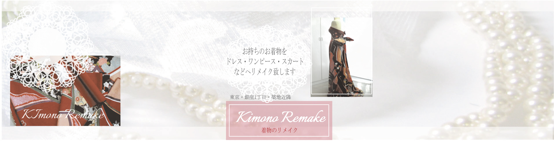 少し着物の柄部分にシミがあったので着物とレースを組み合わせたデザインへリメイクさせて頂きました。